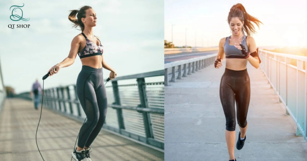 Cardio cường độ vừa và cao: Chạy bộ, đạp xe, nhảy dây, aerobic – giúp đốt mỡ nhanh, cải thiện sức bền tim phổi.