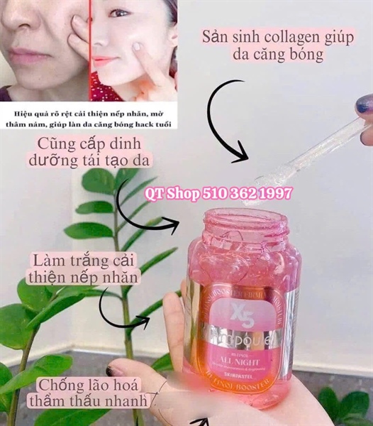 – Chứa Hyaluronic Acid với khả năng “ngậm nước” lên đến 4000 lần cho làn da trở nên căng mọng. Đồng thời giúp nâng đỡ, kích thích quá trình tăng sinh collagen và elastin, cải thiện độ đàn hồi, săn chắc, khắc phục tình trạng chảy xệ, trả lại làn da mịn màng, căng bóng, chắc khỏe.